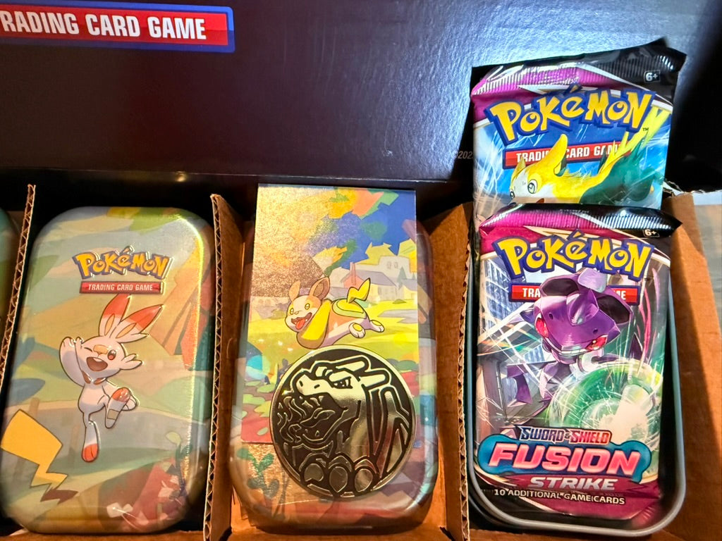 x5 Mini tins: each mini tin contains; x2 fusion strike booster packs (total of 10)