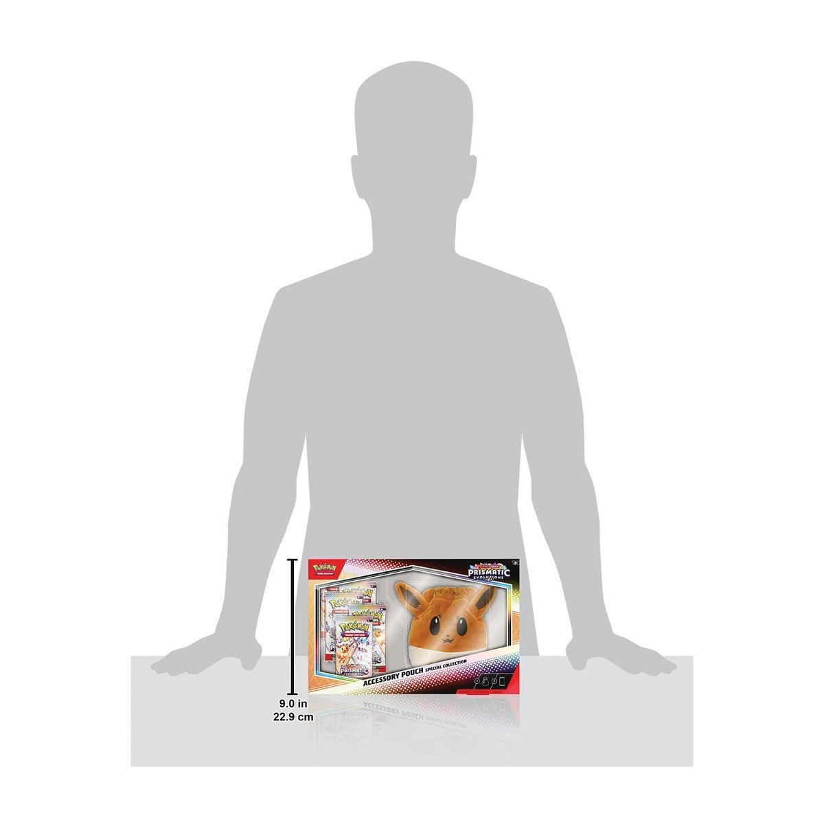 Cute, fuzzy, and full of charm, Eevee can bring a smile to the face of anyone it meets! With the soft accessory pouch in this collection, you can carry Eevee’s enthusiasm with you wherever you go, from Pokémon League to a day out on the town. Eevee’s big ears stand tall for a unique look, and the drawstring on top helps keep your coins and other accessories secure. Also included are booster packs from the special Scarlet & Violet—Prismatic Evolutions expansion, featuring more Pokémon fun inside!